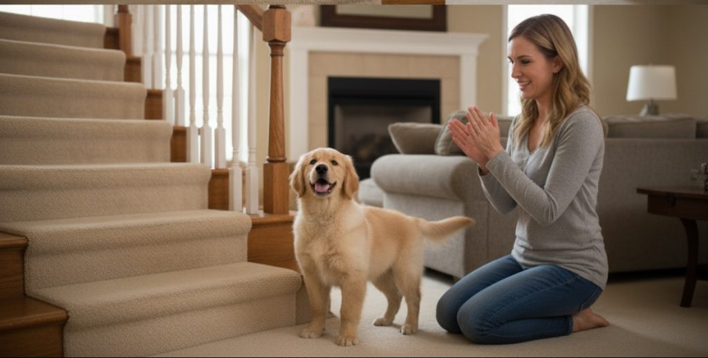 Progression: start easy, then gradually increase intensity or proximity as the pup demonstrates comfort — this builds “bounce back.